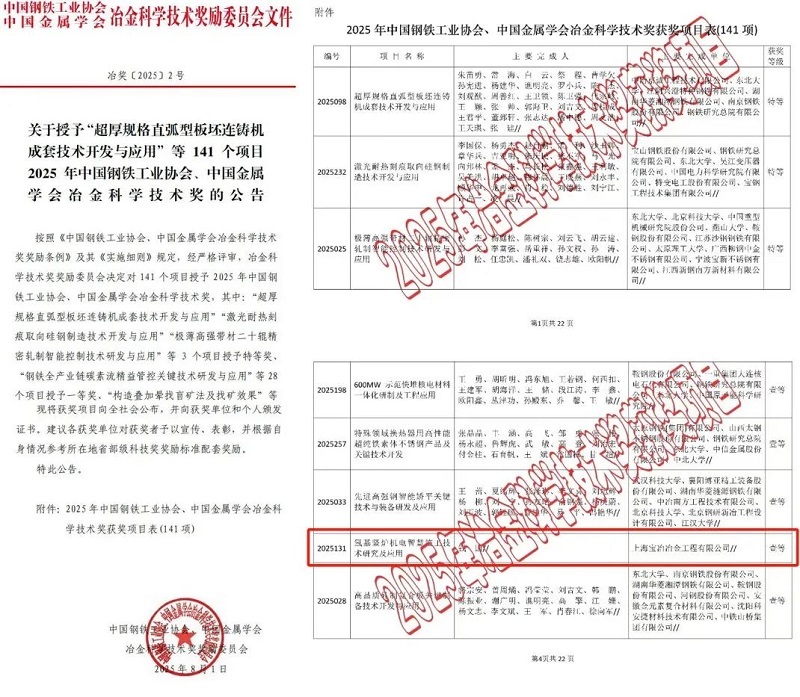 冶金科学技术奖是由中国钢铁工业协会、中国金属学会联合创办并经国家科学技术部正式批准设立的科学技术奖项,是中国冶金行业最高科学技术奖。2025年度,共有来自98个单位共计354项科技成果申报了该奖项,最终评审获奖项目141项,其中一线工人科技成果一等奖仅有1项。
